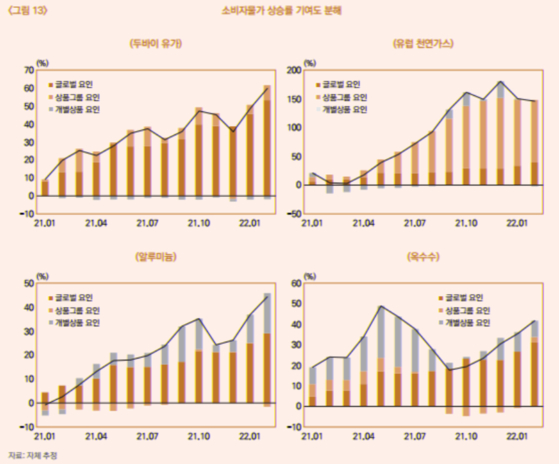 1980년대 중반 이후 원자재 가격 변동 요인을 글로벌·상품그룹·개별상품 요인으로 나눠 기여도를 살펴보면, 각 비중이 50%, 30%, 20%라는 게 한은의 설명이다.