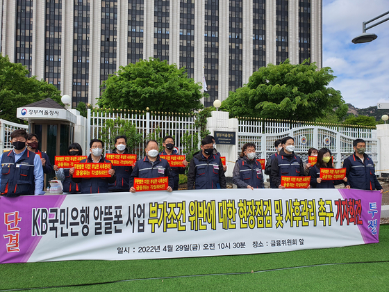 KB국민은행 노동조합은 29일 서울 종로구 금융위원회 앞에서 기자회견을 열고 이 같은 입장을 밝혔다.