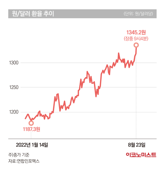 원·달러 환율 1345.2원 기록…13년 만에 최고치