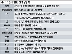 한화그룹 역시 태양광 등 신재생에너지 분야와 우주항공부품이 미래 성장동력이라고 밝혔다. LS그룹은 친환경, 신재생에너지 분야와 하이브리드 및 전기자동차 시장 진출을 선언했다. 이 밖에 대우조선해양과 STX, 동부그룹 등이 친환경 및 신재생에너지, 2차전지 시장 투자에 나섰다.