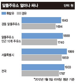 1월 5일 알뜰주유소의 판매가격은 휘발유가 리터당 1843원, 경유는 1694원이다. 전국 평균과 비교하면 휘발유나 경유나 리터당 90원가량 저렴하다.
