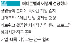 그 원동력은 두 나라에 걸쳐 형성된 과학비즈니스벨트 ‘메디콘밸리(Medicon Valley)’였다. 제약회사와 의료기기·기술회사 등 생명과학 분야 기업이 밀집한 메디콘밸리의 외연은 넓다.