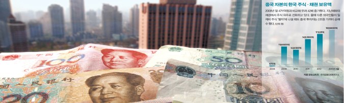 임한나 우리금융경영연구소 연구원은 “차이나 머니 유입을 보면 초기에는 국가기관 중심으로 들어왔으나 최근 민간자본이 늘고 있다”며 “조만간 개인투자자가 해외 증권시장에 직접 투자할 수 있는 제도가 중국에 도입될 예정이어서 중국 자본의 국내 유입은 더욱 늘어날 것”이라고 전망했다.