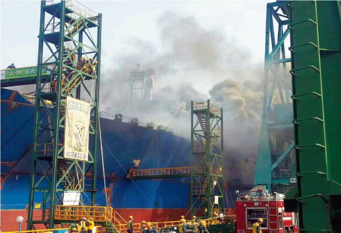 4월 7일 현대미포조선에서 작업 중이던 근로자 1명이 추락사했다. 21일에는 현대중공업 액화석유가스(LPG) 운반선 건조 현장에서 화재가 발생해 협력업체 근로자 2명이 사망하고, 2명이 부상당했다. 근처에서 130여 명의 근로자가 작업 중이었는데 자칫 대형참사로 이어질 뻔 했다. 세월호 참사 닷새 뒤였다. 26일에는 선행도장부에서 일하던 근로자 1명이 목에 에어호스가 감긴 채 추락해 숨졌고, 28일에도 근로자 1명에 바다로 추락해 목숨을 잃었다. 4월 28일은 태국의 한 공장에서 일어난 화재로 188명의 근로자가 사망한 뒤 지정한 세계 산업재해(산재)사망 노동자 추모의 날이었다.