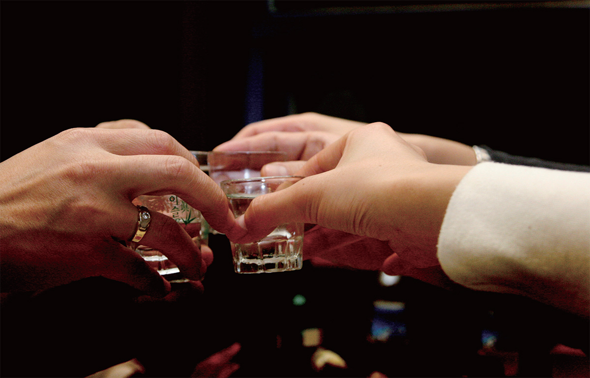 특히 주목할 만한 점은 대학생이 일반 성인보다 더 자주, 더 많이 술을 마신다는 사실이다. 대학생의 월간음주율이 85.4%로 성인(75.6%)보다 높았다. 음주빈도, 음주량 조사에서도 대학생 쪽이 더 높다고 나타났다. 1회 음주에 1~4잔 마신다고 응답한 구간에선 성인이, 5~10 잔 마신다고 응답한 구간에선 대학생이 10%p 이상 높았다. 2014년 초 한국보건사회연구원이 발표한 ‘대학생의 취업스트레스와 중독행동의 관계’ 연구보고서는 전국 14개 대학 446명의 63.5%가 ‘음주 위험수준’이라는 결론을 내렸다.