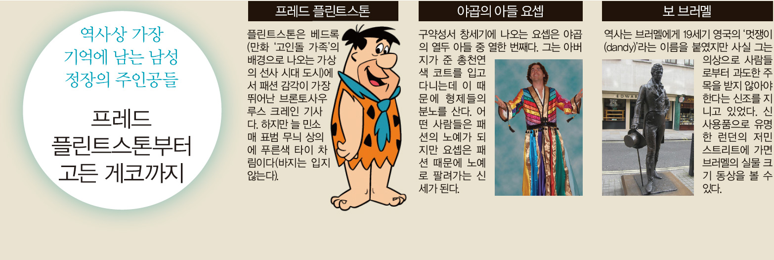 브러멜은 근대에 들어 마음 내키는 대로 옷을 입은 최초의 남자였을지도 모른다. 그는 자신이 입을 옷을 직접 디자인했다. 일례로 그는 당시 남자들이 입던 반바지 대신 긴 바지를 입었다. 긴 바지에 조끼와 코트를 갖춰 입는 패션을 유행시켰다. 그리고 극도의 쾌락을 추구하는 생활을 했다. 극작가 오스카 와일드가 탄생시킨 비극적인 주인공 도리언 그레이는 브러멜을 모델로 했다. 브러멜은 세기말적 퇴폐와 향락에 젖은 파티를 즐겼지만 패션에 대해서만큼은 매우 진지했다. 그는 “길 가던 사람들이 뒤돌아볼 정도면 옷을 잘 입은 게 아니다”고 말했다. 또 “너무 경직되거나 몸에 꼭 끼거나 아니면 지나치게 유행을 따른 옷을 입었다는 표시”라고 덧붙였다.