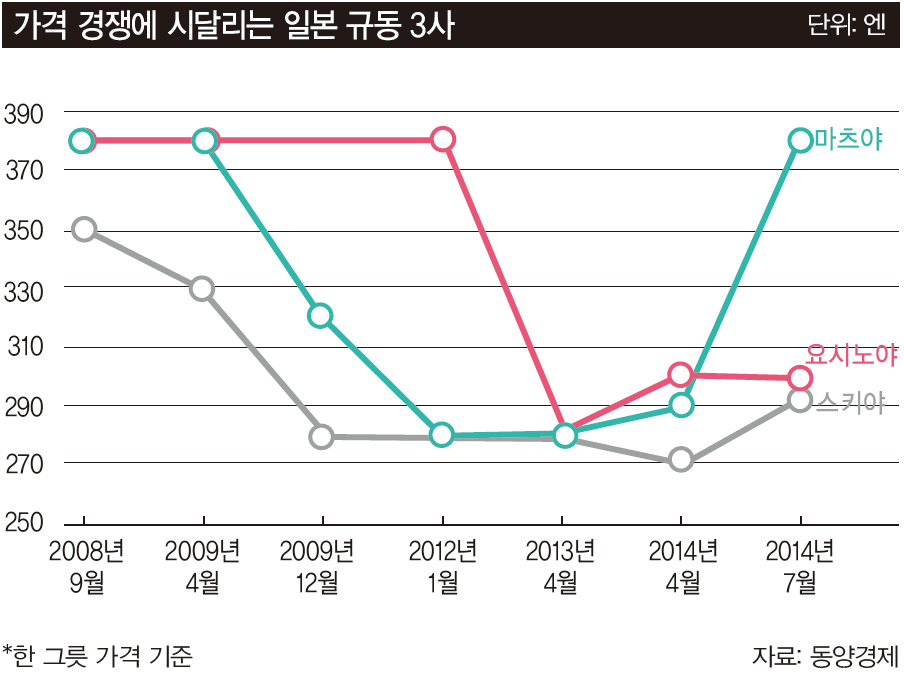 ‘디플레이션의 상징’으로 전락한 규동 업계