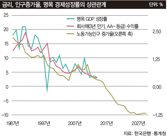 우리나라의 시장금리는 대체로 명목 경제성장률과 거의 비슷한 수준에서 결정돼 왔다. 예를 들어 지난 2013년 우리나라의 명목 성장률이 3.4%였는데, 3년 만기 AA등급 회사채 수익률은 연평균 3.19%였다. 그리고 우리나라의 명목 성장률은 꾸준히 떨어지는 추세다. 그래서 시장금리도 함께 낮아지고 있다. 경기 진폭에 따라 시장금리도 등락을 거듭하겠지만, 장기적으로 본다면 우리나라 역시 저성장과 저금리 구조에 이미 진입했을 가능성이 크다. 성장률과 금리는 보통 인구 증가율에 비례하는 걸로 보는데, 통계청이 제시한 장래 인구 추계를 보면 충분히 그런 예상이 가능하다. 그러나 인플레이션이 발생하거나, 해외의 긴축 충격이 가해지는 경우 또는 예기치 못한 생산성 혁명으로 성장세가 대폭 확충된다면 시장 이자율은 예상보다 더 높은 수준으로 올라갈 가능성도 있다. 대출금리의 구조를 선택하는 것은 그래서 본질적으로 투기적 특성이 있다. 공짜 점심은 없다고 했듯이 모든 경제적 선택은 비용과 위험을 잠재하게 된다. 거액의 빚을 지는 선택이라면 더욱 그러할 것이다.