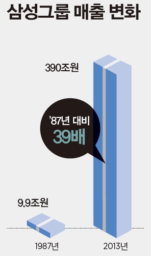 지금의 글로벌 삼성은, 사실 창업주 호암 이병철 회장과 제2창업자 이건희 회장의 미래를 내다보는 기업가정신과 탁월한 리더십의 결과물이라고 해도 과언이 아니다. 삼성그룹은 30년 전이나 지금이나 재계 서열 1위의 대기업으로 우뚝 서 있다. 삼성은 2013년, 그룹 전체에서 390조 원 규모의 매출을 올렸다. 한국은행에 따르면 같은 해 한국의 명목 국내총생산(GDP)은 1428조 원이다. 삼성의 매출액이 한국 GDP의 26.6%나 차지하고 있다. 삼성의 2013년 수출액은 1572억 달러로 한국 전체 수출액 6171억 달러의 25%다. 단순 지표로도 한국 경제의 1/4을 책임지고 있다. 규모나 영향력에서 한 국가와 맞먹을 만한 힘을 갖추고 있는 만큼 삼성가의 일거수일투족이 온 국민의 관심대상이다.