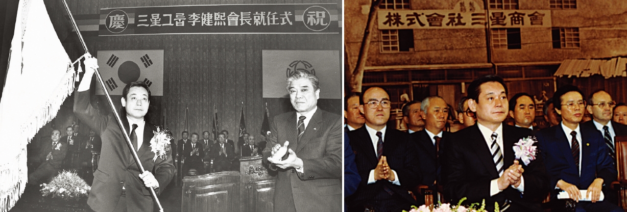 1987년 11월 19일, 이병철 선대회장이 타계하자 삼성그룹 사장단은 오후에 긴급회의를 열어 이건희 부회장을 제2대 회장으로 추대했다. 이건희 회장의 나이 45세 때였다. 그리고 1987년 12월 1일, 이건희 회장이 호암아트홀에서 취임식을 갖고 그룹 회장에 취임한다. 이 회장은 선대회장인 호암으로부터 창업의 효를 이어 받아 호암의 경영철학을 내면화시키는데, 이는 그가 자신의 경영에 대한 소신을 밝힌 당시 취임사에서 그대로 드러난다.