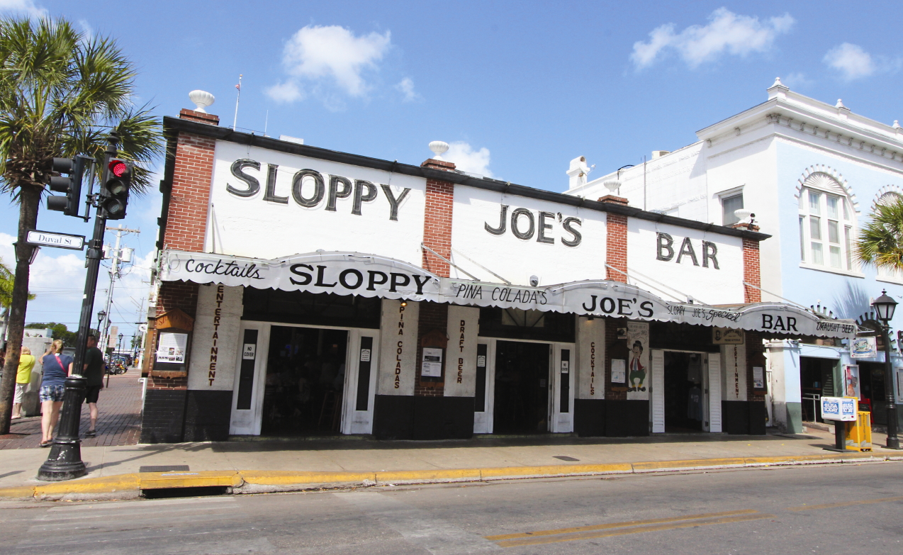 헤밍웨이의 단골 술집으로 유명한 슬로피 조 바는 관광객들의 필수코스다.맬로리 광장에서 바라본 일몰. 수많은 사람들이 이 광경을 보기 위해 모여든다. 최고 번화가인 듀발 거리를 중심으로 작은 기념품 가게와 음식점, 바가 늘어서 있다. 그 중 가장 유명한 슬로피 조 바(Sloppy Joe’s Bar)는 1933년부터 80년 넘게 매일 영업 중이다. 이곳이 유명한 이유는 다름 아닌 헤밍웨이의 단골집이기 때문이다. 매년 헤밍웨이의 생일이 있는 7월 말이면 바에서 ‘헤밍웨이데이 페스티발’이 열린다. 헤밍웨이와 닮은 사람을 선발하는 이 행사는 3일 밤낮 계속되는데, 이맘때면 헤밍웨이처럼 하얀 턱수염을 기른 덩치 큰 남자들로 문전성시를 이룬다. 듀발 거리의 남쪽 끝에는 이곳이 미국 최남단 지점임을 알리는 표식이 서 있다. ‘쿠바까지 90마일’이라는 글귀가 새겨진 커다란 표식은 키웨스트의 상징물로, 기념사진을 찍으려면 긴 줄을 서는 게 예사다.