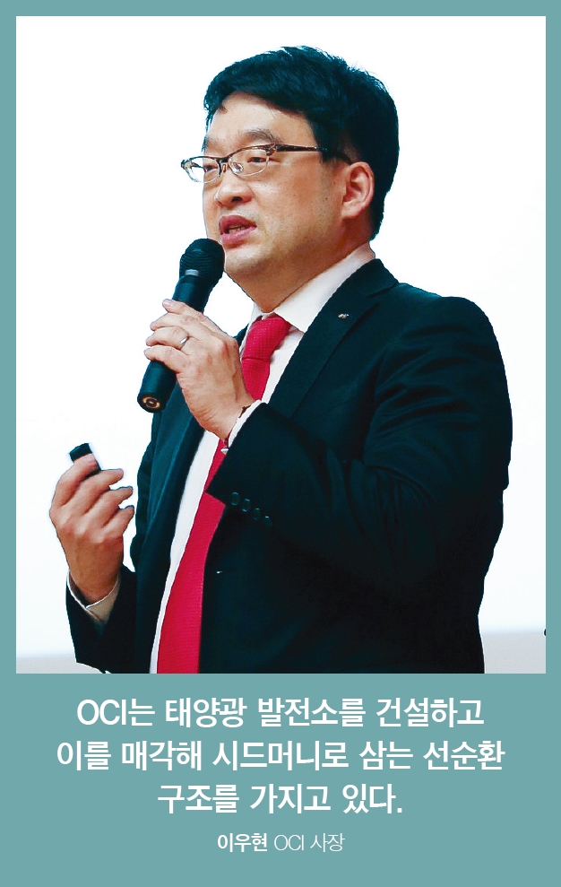 한국태양광산업협회 서재홍 부장은 “OCI는 태양광 발전소를 건설하고 이를 팔아서 시드머니로 삼는 선순환 구조를 가지고 있다”면서 “폴리실리콘 분야에서 선두에 나서고 있고, 태양광발전 사업의 경쟁력까지 갖추고 있어서 앞으로도 괜찮은 성적을 낼 것”이라고 분석했다.