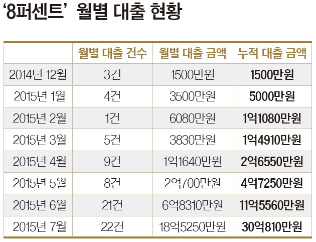 8퍼센트가 입소문이 나면서 대출을 받고 싶은 소상공인과 개인들의 사연이 홈페이지를 통해 폭발적으로 접수되고 있다고 했다. “7월 초 주말을 포함한 4일 동안 600건의 사연이 접수가 됐다”고 자랑할 정도. 하지만 600건 중 대출 심사를 통과할 수 있는 대상은 3%에 그친다. 투자자를 보호하기 위해서 심사를 철저하게 하기 때문이다.