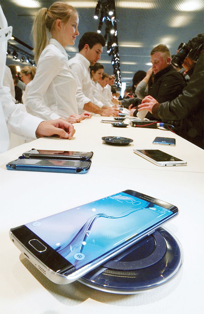 삼성전자는 지난 4월 스마트폰 갤럭시S6를 충전패드에 올려놓으면 충전이 되는 무선 충전기를 선보였다. / 사진:뉴시스무선 충전 기술이 상용화되면서 흔히 볼 수 있을 모습이다. 각종 전자기기를 전기선 없이 충전하는 무선 충전 시대가 열리고 있기 때문이다. 무선 충전은 전자기기를 충전패드나 거치대 등 전력을 공급하는 송신부에 올려놓으면 배터리가 충전되는 기술이다.