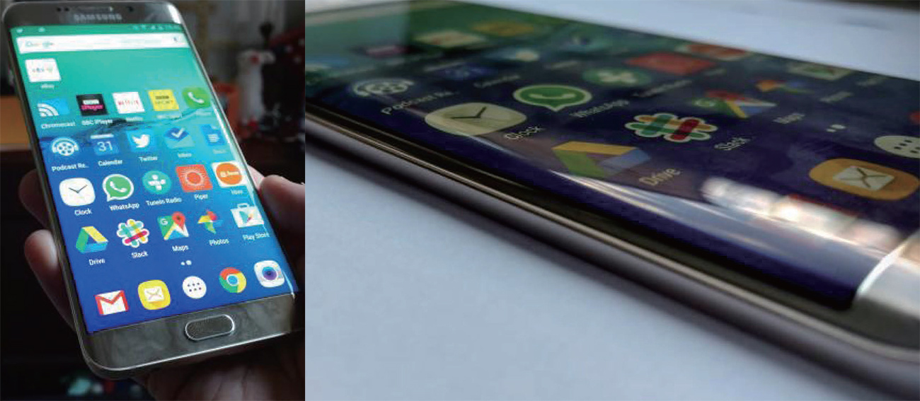 그렇다 해도 곡면 스크린이 훌륭하다고 생각한다. 흡인력 있고 아름답다. 일정 부분 초고화질의 쿼드HD(2560×1440) 해상도 디스플레이 덕분이다. 그러나 가장자리를 둥글게 굽혀 놓아 스크린이 원래 규격 5.7인치보다 훨씬 더 커 보인다. 화면을 쓸어 넘기기가 훨씬 수월하고 전화기의 부피를 줄이는 효과도 있다. 아이폰 6s 플러스에 비해 한 손으로 사용하기가 훨씬 용이해졌다. 물론 모두가 이런 관점에 동의하는 건 아니다.