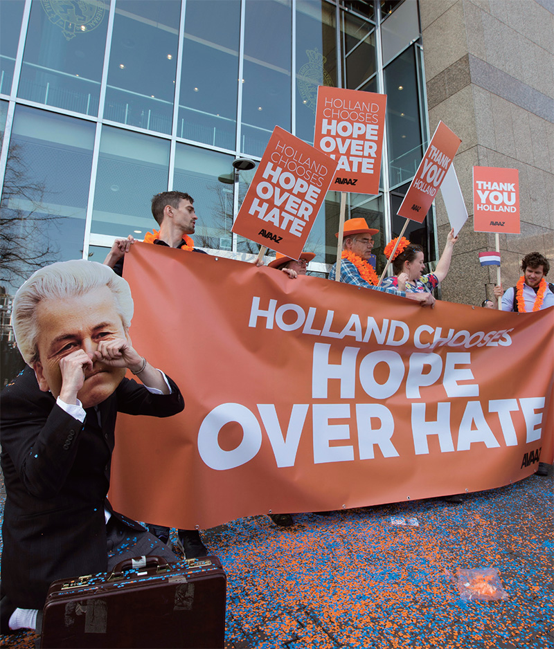 드디어 네덜란드 유권자들이 투표를 끝내고 개표 결과가 쏟아져 들어오기 시작하자 마르크 뤼테 총리는 활짝 웃었다. 뤼테 총리는 극우 반(反)이슬람 포퓰리스트 헤이르트 빌더르스 자유당(PVV) 대표와 그가 옹호하는 ‘증오의 정치’를 네덜란드 유권자가 단호하게 심판했다며 기뻐했다.