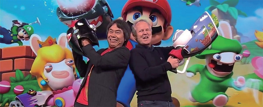 마리오를 비롯해 ‘젤다의 전설’ 시리즈의 링크 같은 닌텐도 주인공을 만들어낸 미야모토 대표가 기예모 CEO와 함께 무대에 나타나자 장내는 환호성으로 달아올랐다. 두 사람은 ‘마리오+래비즈 킹덤 배틀’의 무기를 들고 익살스럽게 포즈를 취하면서 닌텐도와 유비소프트의 파트너십을 과시했다. 그런 흥분의 도가니 속에서도 미야모토 대표는 차분히 합작품에 관한 자신의 의견을 밝혔다. 그는 ‘마리오+래비즈 킹덤 배틀’이 ‘슈퍼마리오’와 닮은 플랫폼 게임이 되지 않기를 원했다고 말했다. “나는 기존에 있던 점프 위주의 마리오 게임이 아닌 독특한 게임을 만들어달라고 유비소프트에 요구했고 그 결과물이 만족스럽다.”