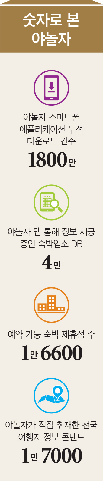 투자를 받은 후 이 대표는 3개의 목표를 새롭게 수립했다. 예약 시스템을 강화하고 고객에게 혜택을 돌려주는 마케팅이 첫 번째 계획이다. 야놀자는 그동안 광고나 마케팅보다는 내실 안정화에 집중했다. 이젠 야놀자를 통해 중소 숙박업소의 예약 비율을 높일 때라고 판단했다. 그는 “중소 숙박업소 예약률이 아직 5% 정도밖에 안 된다. 이제는 예약률을 높이고, 30대 이상에서도 야놀자의 편리함을 느끼게 할 때다”고 강조했다.