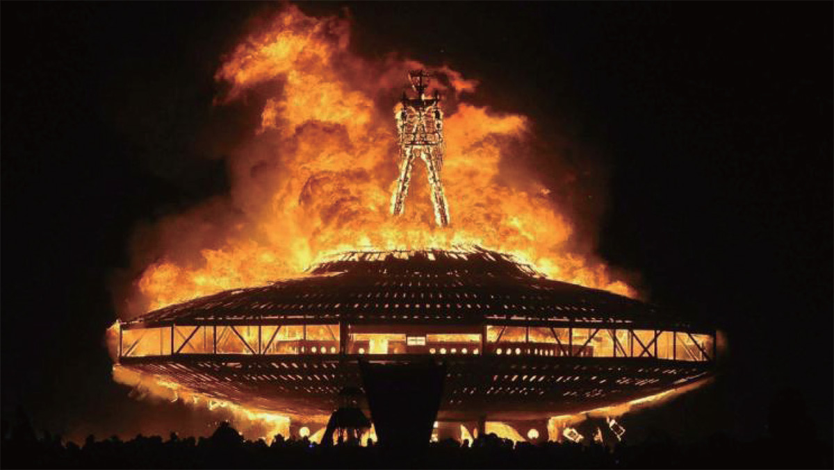 참가자들은 버닝맨 프로젝트 주최측이 블랙 록 사막 한가운데 임시로 만든 가상의 도시 ‘블랙 록 시티’에서 일주일 동안 머무르며 수많은 몰입적 체험을 한다. 지난 8월 27일 올해의 테마인 ‘극단적 의식’을 주제로 한 예술작품이 넘쳐나는 현장에 참가자들이 도착하기 시작했다. 최대의 행사는 9월 1일 시작됐고 9월 2일엔 연례 행사인 ‘버닝 오브 더 맨’ 의식이 열렸다. 올해는 ‘골든 스파이크 템플’을 중심으로 이뤄졌다. 버닝맨 페스티벌에서는 매년 제시되는 테마를 주제로 한 설치미술 작품들이 전시된다. / 사진 : YOUTUBE.COM버닝맨 페스티벌은 매년 다른 테마를 주제로 한다. 주최측에 따르면 올해의 테마 ‘극단적 의식’은 “숭배와 조롱, 신뢰와 신념, 부조리와 숭고함 사이의 모호한 경계”를 염두에 둔 것이다.
