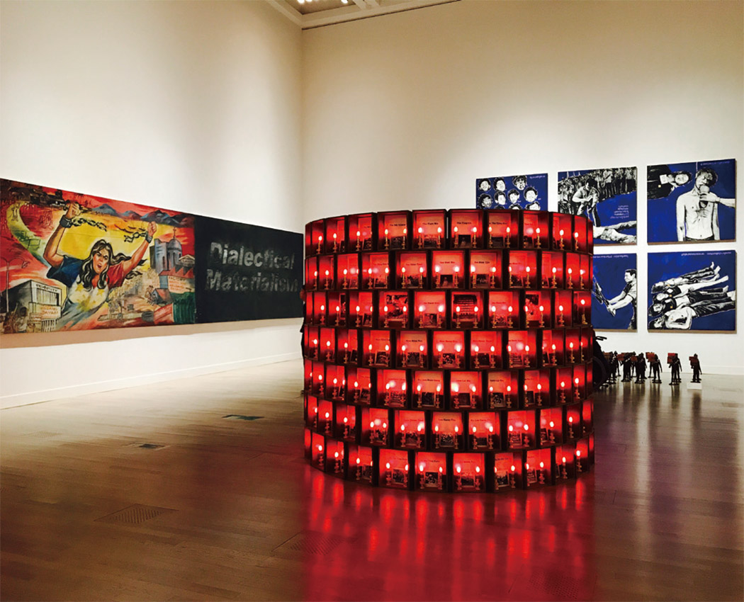도쿄에서도 이렇게 신미술관과 모리미술관이 공동으로 전시를 진행한 적은 거의 없다시피한데, 이처럼 대규모로 구성된 이번 전시는, 9개의 주제로 나누어 진행되었다. <빠르게 변화하는 세계> <열정과 혁명들> <역사적 아카이브> <다양하게 공존하는 정체성> <일상의 삶> <현대적 발전과 그 뒤의 그림자> <예술이 무엇이고, 왜 하는가?> <명상적 미디어> <역사와의 대화> 라는 주제로, 190점의 작품들을 나누었다. 이 9개 주제의 제목이 시사하듯, 이번 전시는 구겐하임의 전시와는 사뭇 다르게 다소 역사적 사건과 연계된 역사책의 시각화와도 같은 연구 중심 전시였다. 구겐하임 전시는 UBS의 콜렉션이 되는 만큼, 지난 5년간 소더비와 싱가포르 아트스테이지 등 동남아시아 중요한 미술 시장에서 큰 각광을 받던 아린 수나리오, 와누 등의 스타 작가들 위주로 많이 보여진 데 반해, 본 전시는 1927년생 작가부터 1987년생 작가에 이르기까지 폭넓은 작가들의 다양한 역사와 사회에 대한 비평적 관점이 주가 되는 전시라고 생각하는 것이 맞을 것 같다. 또한 작품 캡션을 보고 있노라면, 상당히 많은 일본 미술관들의 소장품이 소개된 전시라는 점도 눈여겨봐야 할 사실이다.