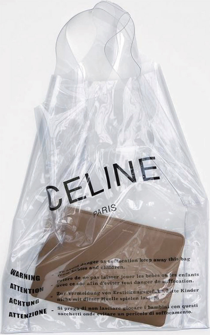 패션 브랜드 셀린느가 내놓은 투명 비닐 백, 식료품점에서 무료로 주는 것과 비슷해 보이지만 몸값은 600배 이 백은 피비 파일로가 디자인 한 것으로 지난해 10월 ‘2018 셀린 스프링’ 컬렉션 패션쇼에서 선보였다. / 사진:CÉLINE/NORDSTROM식료품점에서 쇼핑 중인 억만장자의 모습을 떠올려 보자. 구어메이 피넛 버터와 파예 그릭 요거트를 구입한 그가 그것들을 담기 위해 고급스런 라이프스타일에 어울릴 만한 봉투를 찾는다면? 프랑스의 유명 패션 브랜드 셀린느가 그런 사람들을 위해 투명 비닐백을 내놓았다. 식료품점에서 무료로 주는 비닐 봉투와 별 차이 없어 보이지만 가격은 무려 590달러에 이른다.