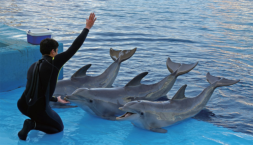 동물원의 친숙한 조련사와 놀 시간 되면 물 밖으로 머리 내밀고 기대감 드러낸다는 연구 결과 나와 동물원의 돌고래들은 조련사와 놀 시간이 되면 장난감을 갖고 놀 때보다 반응이 더 커진다는 연구 결과가 나왔다. / 사진:GETTY IMAGES BANK돌고래는 사람과 노는 걸 좋아할까? 새 연구에 따르면 수족관이나 동물원의 병코돌고래는 친숙한 조련사와 놀 시간이 되면 장난감을 갖고 놀거나 혼자 있는 시간을 앞뒀을 때보다 반응이 더 커진다.