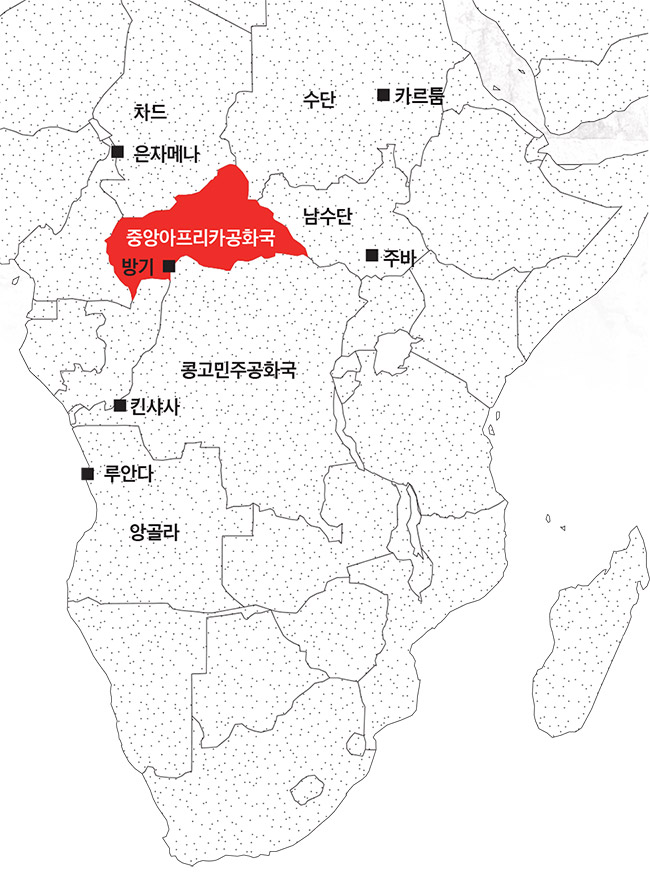 황폐화됐지만 광물 풍부한 중앙아프리카공화국에 무기와 병력 보내는 러시아. 서쪽으로 기울었던 아프리카 세력균형의 추를 동쪽으로 돌려놓기 위한 첫걸음이다 CLOCKWISE FROM TOP LEFT:ALEXANDER ZEMLIANICHENKO-AP-NEWSIS, GETTY IMAGES BANK(2), JEROME DELAY-AP-NEWSIS, JIANG KEHONG-XINHUA, UBALDO GONZALEZ-XINHUANEWSIS, ALEXEI NIKOLSKY-SPUTNIK-KREMLIN POOL-AP-NEWSIS, MARTIAL TREZZINI-KEYSTONEAP- NEWSIS, MAURO VOMBE-XINHUA-NEWSIS장베델 보카사 황제가 한때 군림했던 허물어져가는 궁전에 새 손님들이 찾아왔다. 1970년대 중앙아프리카공화국을 통치하는 동안 보카사 황제는 성대한 대관식 연출에 1년치 개발원조를 투입하고 죄수들의 고문을 직접 지휘했다. 그러나 1966년 보카사 집권을 후원했던 프랑스 정부가 1979년 그를 축출했다. 40년이 지난 지금은 러시아 군인들이 베렝고에 있는 이 허물어져가는 궁전 주위를 배회하고 있다. 그리고 이 같은 세력 판도의 변화가 서방에 우려를 불러일으킨다. 블라디미르 푸틴 러시아 대통령이 새로 파트너십을 구축하고 냉전시대 동맹의 불씨를 되살리면서 아프리카로 진출한다.러시아 과학원의 에브게니 코렌디아소프 러시아-아프리카 학 연구팀장은 “아프리카를 둘러싼 전쟁이 앞으로 확대될 것”이라고 말했다. 러시아 경제는 장기침체에 빠져 있으며 소비에트 시대 이래 러시아의 영향력은 쇠퇴해 왔다. 그에 따라 크렘린 정부는 외교·경제·군사적 수단을 동원해 아프리카에서 정치적 영향력과 신시장의 확대를 꾀한다. 수십억 달러 규모의 군수계약을 체결하고, 대형 건설 프로젝트에 입찰하고, 우주 통신을 확대하고, 탄화수소 광상을 개발하고, 더 비밀스런 작전을 따라 공개적인 군사개입을 벌이는 등의 방법이다.