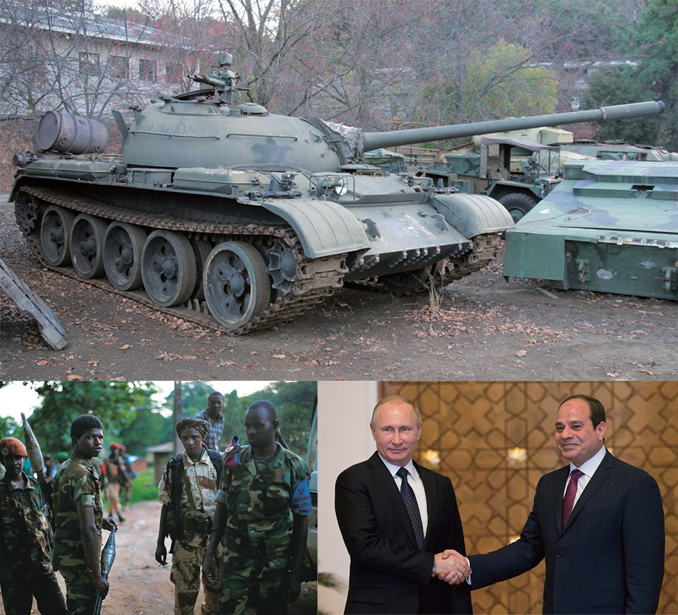 (왼쪽부터) 1991년 에티오피아의 멩기스투 하일레 마리암 정부 타도에 사용된 소련 탱크, 밤바리의 기지로 돌아가는 전 셀레카 전사들, 지난해 카이로를 방문한 푸틴 대통령(왼쪽)을 맞이하는 압델 파타 엘시시 이집트 대통령. / 사진:FLICKR, JEROME DELAY-AP-NEWSIS, ALEXANDER ZEMLIANICHENKO-POOL PHOTO-AP-NEWSIS트럼프 정부가 미국의 외교적·군사적 개입을 줄여나가면서 푸틴의 아프리카 비전이 확대된다. 러시아가 아프리카의 주요 안보 파트너가 되려 애쓰는 데는 국제적인 고립에 맞서고, 고조되는 성전주의의 위협을 물리치고, 풍부한 아프리카 천연자원의 혜택을 보려는 목적이 있다. 이는 러시아의 해군 주둔을 확대하고 아프리카 지도자들 사이에서 러시아의 글로벌 행동에 대한 지지기반을 확충해 미국을 약화시키고 서방의 작전 능력을 제한할 잠재력이 있다.