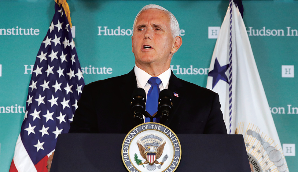 마이크 펜스 부통령은 지난 10월 4일 허드슨연구소 연설에서 중국이 미국의 여론과 선거에 영향을 미치려 한다고 주장했다. / 사진:AP-NEWSIS미국 전략국제문제연구소(CSIS)의 중국 전문가 크리스 존슨은 전·현직 중국 관리들이 자신을 찾아오는 건수를 보면 미국과 중국 사이의 긴장이 고조되는지 바로 파악할 수 있다고 설명했다. “양국 관계에서 문제가 생기면 중국 외무부의 전직 또는 현직 관리가 나 같은 연구원을 자주 찾아온다. 그런 방문 증가는 중국 측에 우려가 있다는 표시다. 바로 몇 달 전이 그랬다.”