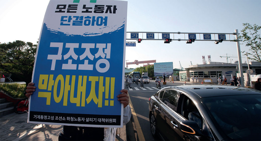 13일 협력업체 근로자의 사망 사고가 발생산 삼성중공업 거제조선소. 경영난에 시달리고 있는 삼성중공업은 2016년부터 협력업체를 중심으로 강도 높은 구조조정 작업을 벌이고 있다. / 사진:김유경 기자또 매각이 지연되고 있는 시추설비의 재가동 문제도 주가에 걸림돌이 되고 있다. 삼성중공업은 퍼시픽드릴링(PDC)으로부터 수주한 한 척과 씨드릴(Seadrill)로부터 수주한 두 척 등 총 3척의 시추선을 계약 취소로 인도하지 못하고 있다. 유휴 상태인 시추선을 매각하려면 설비를 다시 가동해야 하며 이에 적지 않은 비용이 발생한다. 신한금융투자 황어연 연구원은 “2016~18년 수주 부진으로 내년 하반기에야 매출이 본격적으로 늘어날 것으로 보인다”며 “주가 반등을 논하기 아직 일러 2019년 하반기까지 ‘중립’ 투자의견을 유지한다”라고 말했다.