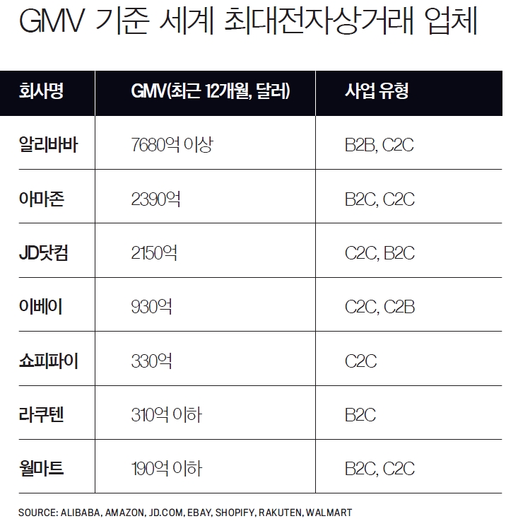 온라인 상점을 비교할 때는 그 마켓플레이스에서 판매된 전체 품목의 총가액을 측정한 유통총액 방식이 가장 보편적이다. / 사진:MA DAN-XINHUA-NEWSIS이들 7개 업체는 저마다 다양한 전자상거래 투자기회를 제공한다. 아마존은 글로벌한 스케일을 자랑하고 알리바바와 JD닷컴은 급성장하는 중국시장 접근이 매력이다. 쇼피파이는 증가하는 소규모 소매 창업자 기반이 강점이다. 월마트는 플립카트 인수로 인도시장에 진출하면서도 막대한 오프라인 사업으로 안정성이 높다. 이베이와 라쿠텐은 경쟁사들보다 성장률은 낮지만 이베이는 핵심사업의 수익성 향상 방안을 모색하고 있으며 라쿠텐은 소매유통 이외의 분야 투자로 이익증가를 견인한다. 전자상거래 업종에 관심 있는 투자자라면 이들 7개 기업이 좋은 출발점이 될 듯하다.