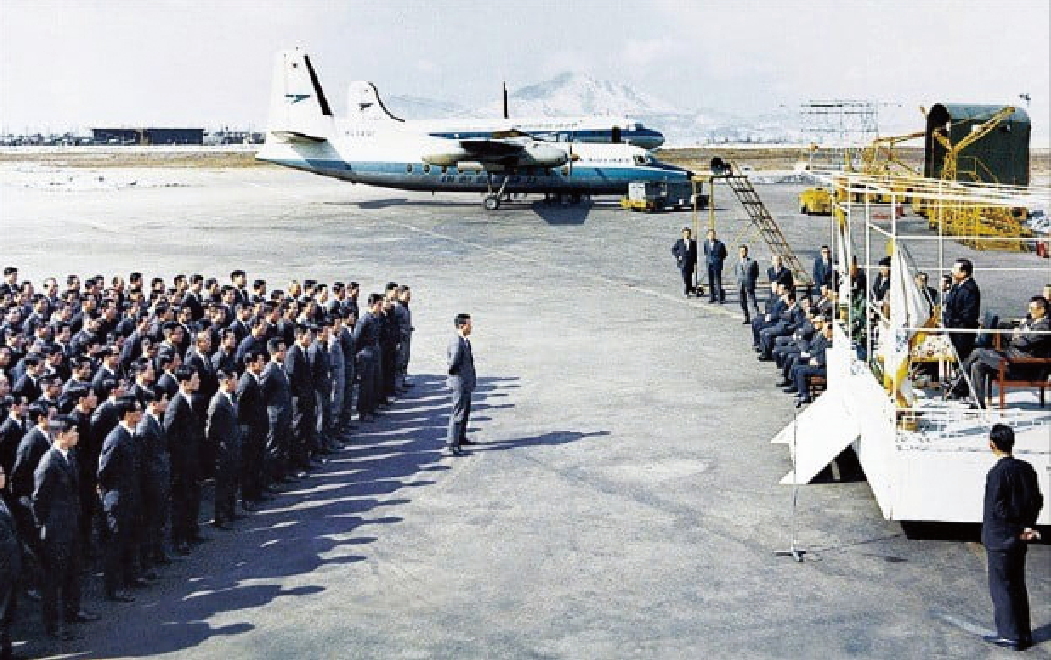 1969년 3월 김포공항에서 열린 대한항공공사 인수식에서 조중훈 회장이 인사말을 하고 있다.국내 항공운송산업의 양강체제는 1988년 제2민항인 아시아나항공의 출범으로부터 시작된다. 이전까지는 1969년 출범한 대한항공이 약 20년간 독점체제를 유지했다. 한진그룹의 조중훈 창업주는 박정희 대통령의 요청을 받아들여 적자가 지속되던 국영항공사인 대한항공공사를 인수했다. 이후 1972년 보잉747과 에어버스의 A300 등 당시의 최신 기종을 구매하면서 규모를 키웠고, 미국·유럽의 취항지도 서서히 늘리면서 성장했다. 특히 1970년대 대한항공은 1·2차 오일쇼크라는 산을 넘으면서 크게 성장했다. 조 회장이 경영에 본격적으로 참여한 것도 이 즈음이다. 당시 연료비 부담으로 미국 최대 항공사였던 팬암과 유나이티드항공이 수천 명의 직원을 감원하는 와중에도 시설과 장비 가동률을 오히려 높이는 전략을 구사했다. 항공기 구매도 계획대로 진행했다. 불황 넘어 호황을 대비한 것이다. 이 결단은 오일쇼크 이후 새로운 기회로 떠오른 중동 수요 확보와 노선 진출에 결정적 역할을 하게 됐다.
