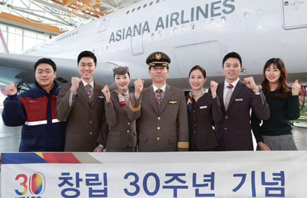 지난해 창립 30주년을 맞아 아시아나항공 각 본부별 직원들이 인천 제2격납고에 모여 파이팅을 외치는 모습.약 20년 동안 항공운송을 독점해온 대한항공은 독재정권 시절이라 대놓고 반발하지는 못했지만 “가장 우려했던 일”이라며 불안감을 감추지 못했고 “시기상조다” “금호가 과연 해낼 수 있겠느냐”는 반응을 보였다. 대한항공은 그전까지 제2민항 얘기가 나올 때마다 “국적 항공사는 하나로 충분하다”며 항공사업의 전문성과 안전성 등을 들어 제2민항 허가 저지에 총력을 기울였다. 이후에도 정부에서 단행한 복수민항화 조치에 대해 “시대의 변화에 역행하는 근시안적인 항공정책으로 자국 항공기업의 경쟁력을 손상시키는 결과를 초래하는 행위”라며 비판을 이어갔다.