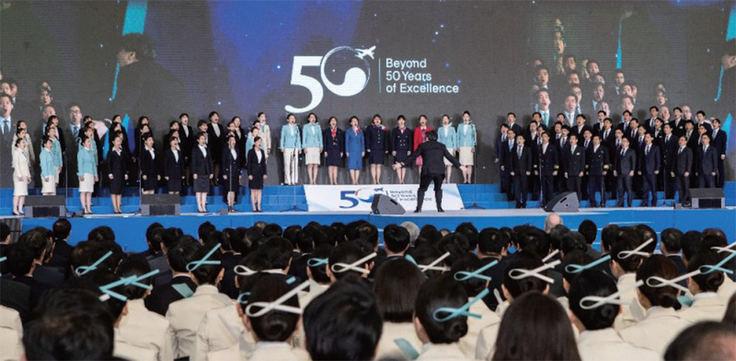 3월 4일 서울 공항동 대한항공본사 격납고에서 열린 대한항공 창립 50주년 기념식.업계에 또 한 번의 변화가 온 건 2000년대 중반이다. 세계적인 항공자유화 확산과 주요국과의 항공협정을 통한 운수권 확대가 이뤄진 시기다. 특히 국내에 크게 영향을 미친 것은 2000년대 중국 노선의 운수권 확대와 2011년 시행된 일본의 항공자유화다. 또 한국을 동북아 허브로 만든다는 정부 방침에 따라 태국·베트남·필리핀 등 동남아 국가를 연결하는 하늘길이 이 과정에서 두 대형항공사 외에 LCC가 운수권을 확보해 단거리 국제선에 안정적으로 진출하면서 양대 항공사의 과점체제에 균열이 갔다. 2006년 각각 37.7%, 23.9%였던 대한항공과 아시아나항공의 국제선 점유율은 지난해 20.5%, 14.6%로 낮아졌다. 이를 기반으로 2010년대 들어 LCC 업계의 비약적인 성장에 따라 두 대형항공사의 실적은 급감했다. 대한항공과 아시아나항공의 영업이익은 2010년부터 줄어들어 2013년엔 나란히 적자를 기록했다. 특히 아시아나항공은 2010년 채권은행단과 자율 협약을 체결하고 재무구조 건전성 확보와 경쟁력 강화를 위한 구조조정 작업에 착수해야 했다.