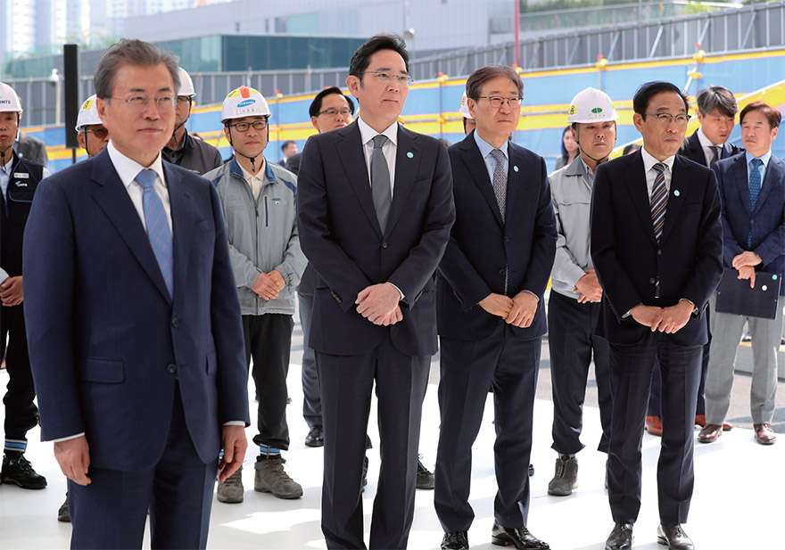 미래 활용성 풍부하고 시황 덜 타 유리… 시장 비중도 7대 3으로 더 높아 4월 30일 삼성전자 화성사업장을 방문한 문재인 대통령(왼쪽)과 이재용 삼성전자 부회장(왼쪽 두 번째). / 사진:연합뉴스“우리의 목표는 분명합니다. 메모리반도체 분야 세계 1위를 유지하는 한편 2030년까지 시스템반도체 파운드리(위탁생산) 분야 세계 1위, 팹리스(설계전문) 분야 (글로벌) 시장점유율 10%를 달성해 종합반도체 강국으로 도약하는 것입니다.” 지난 4월 30일 문재인 대통령은 삼성전자의 경기도 화성사업장을 방문한 자리에서 이같이 강조하면서 ‘시스템반도체’의 국가적인 육성 의지를 내비쳤다. 이를 위해 반도체 분야에서 내년부터 2030년까지 1조원을 투입해 차세대 시스템반도체 연구·개발(R&D)에 나서고, 1만7000명의 고급 전문 인력을 양성하겠다고 정부는 밝혔다. 이보다 한 주 앞서 삼성전자는 2030년까지 133조원의 투자를 시스템반도체 사업에 집중하겠다는 계획을 발표한 바 있다. 정부와 기업의 의지가 동시에 시스템반도체 쪽으로 모아졌다.