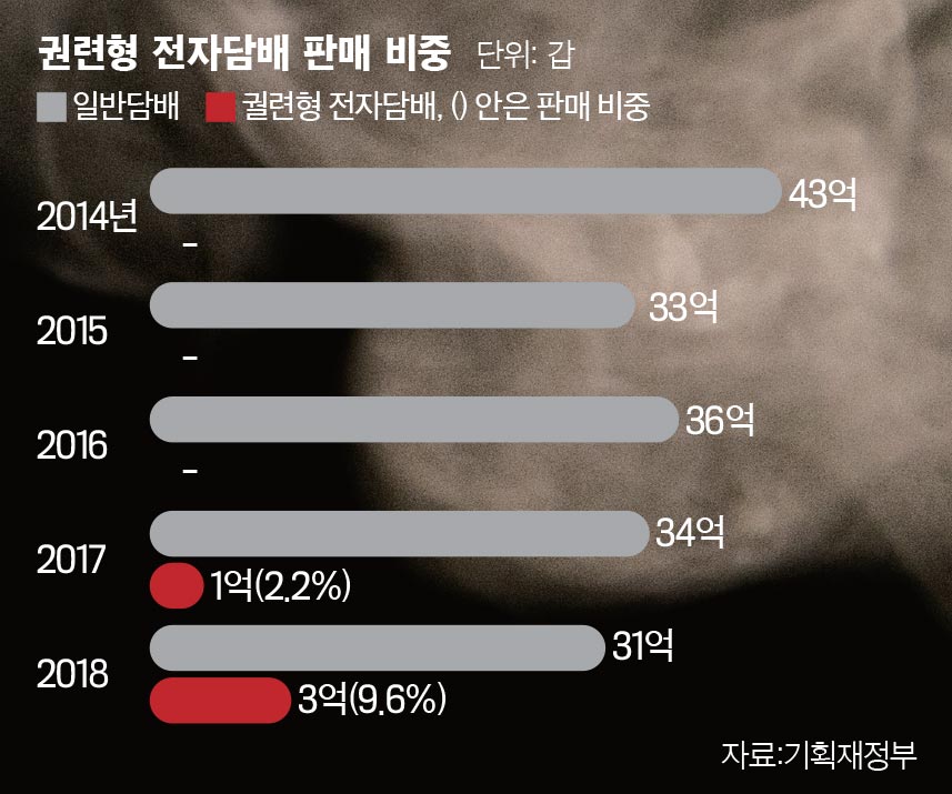 게다가 국내에서는 궐련형 전자담배가 이미 자리를 잡았다는 분석도 나온다. 기획재정부에 따르면 올 1분기 궐련형 전자담배 판매량은 9200만 갑으로 지난해 같은 기간보다 33.6% 증가했다. 전체 담배시장에서 궐련형 전자담배가 차지하는 비중은 11.8%로 10%를 돌파했다.