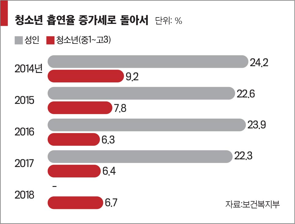 청소년 흡연율을 경계하는 목소리도 나온다. 쥴은 미국에서 청소년 흡연자를 양산했다는 지적을 받고 있다. 미국 질병예방관리센터가 지난해 11월 20일 발표한 전자담배 청소년 사용실태에 대한 보고서에 따르면 2017~2018년 고등학생 전자담배 사용자가 78% 증가했다. 쥴과 같은 사용이 편리한 전자담배가 인기를 끌었기 때문이라는 게 질병예방관리센터의 분석이다. 이를 토대로 미국 보건당국은 쥴에 대한 온라인 판매와 마케팅을 축소하고 과일·오이향과 같은 팟 판매를 중단시켰다. 이에 대해 쥴랩스 측은 “청소년 흡연을 막기 위해 담배 업계에 전례 없던 방식 도입을 준비 중”이라며 “소비자가 직접 흡연량을 눈으로 확인하고 스스로 제어할 수 있도록 하는 시스템을 실험하고 있다”고 밝혔다. 권덕철 보건복지부 차관은 “시장을 면밀히 살펴 액상형 전자담배의 등장이 청소년 흡연으로 이어지지 않도록 관리 감독을 해 나가겠다”고 말했다.