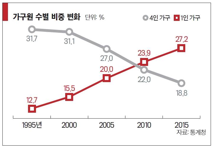 저출산·고령화·비혼 등으로 1인 가구 더 늘 듯
