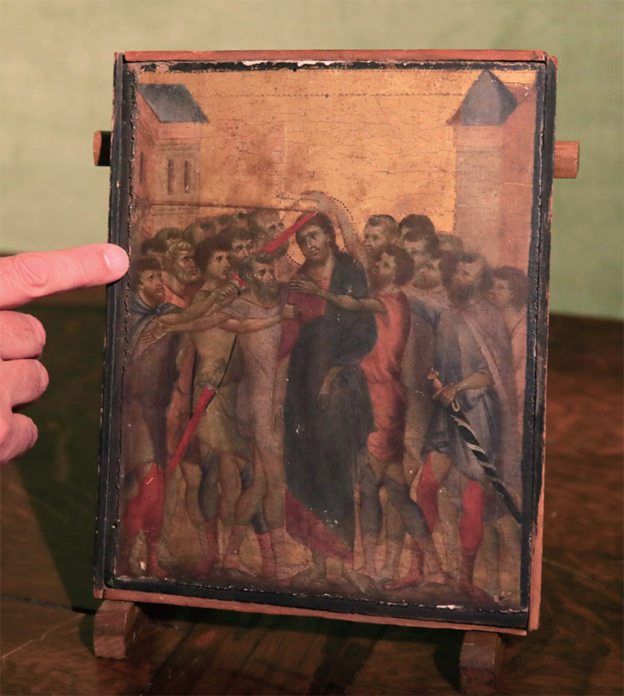 13세기 피렌체 거장 치마부에의 ‘조롱받는 예수’로 확인 … 약 78억원 가치로 추정 3세기 르네상스 거장 치마부에의 작품으로 확인된 ‘조롱받는 예수’가 프랑스 파리 근처 콩피에뉴의 한 민가 부엌에서 발견됐다. / 사진:AP/YONHAP13세기로 거슬러 올라가는 걸작 미술품이 뻔히 보이는 곳에 숨어 있다가 최근 발견됐다. 프랑스 북부 콩피에뉴의 한 민가에 걸렸던 이 그림은 르네상스 시대 피렌체 학파의 시조로 불리는 13세기 화가 조반니 치마부에(본명은 체니 디 페포)의 잊혀진 명화였다. 그 민가의 나이 많은 안주인은 이 그림이 누구의 작품인지 모르고 그저 오래된 성화로만 생각하고 부엌에 걸어두고 있었다.