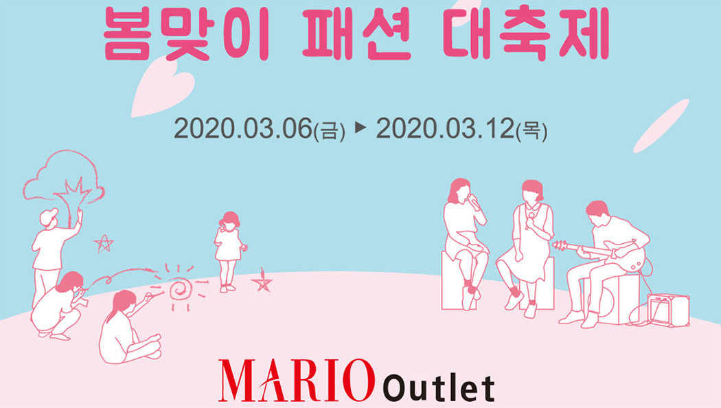 국내 최대의 아웃렛인 마리오아울렛이 3월 6~12일 ‘봄맞이 패션 대축제’를 연다. 이번 행사에서는 ‘LF팩토리 창고 대개방’이 진행되고, 신규 골프브랜드 ‘르꼬끄골프’와 ‘볼빅’을 선보인다. 또한 31일까지 펜션 숙박권을 증정하는 ‘연천 허브빌리지 경품 대축제’ 이벤트도 진행한다. 1관 1층 ‘린’과 ‘데무’에서는 최대 70%까지 할인된 여성 의류 상품을 선보인다. 1관 4층 남성 봄 정장 제안전도 들릴만 하다. 6층에서는 LF팩토리 창고 대개방 이벤트가 열려 ‘헤지스’, ‘닥스’, ‘질스튜어트’, ‘마에스트로’ 등의 상품을 균일가로 만날 수 있다.