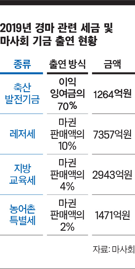 마사회의 적자 예상으로 지방자치단체의 재정과 축산발전기금 조성도 어려움을 겪을 것으로 전망된다. 마사회 경마 매출의 16%(레저세 10%, 지방교육세 4%, 농어촌특별세 2%)는 세금으로 걷히는데, 이 가운데 레저세와 지방교육세는 지방 세원으로 활용된다. 마사회는 지난해에만 레저세 7357억원, 지방교육세 2943억원, 농어촌특별세로 1471억원을 냈다. 축산발전기금 조성에도 적신호가 켜졌다. 마사회는 전년도 이익잉여금의 70%를 출연해 축산발전기금을 납입했는데, 올해 적자 전환할 경우 내년에는 기금 출연금 자체가 사라지게 되는 셈이다.