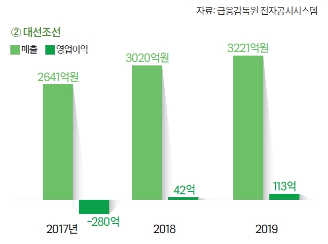 대선조선 사정도 마찬가지다. 대선조선은 수출입은행 관리 8년 만인 2018년에야 흑자로 전환했다. 그러나 신규 수주 물량이 확보되지 않아 고사 위기에 처해 있다. 대선조선 노동조합에 따르면 지난해 대선조선은 목표 수주량(12척)에 못 미치는 5척 수주에 그쳤다. 대선조선 노동조합 관계자는 “수출입은행은 선박을 수주할 때 특정 금액 이하로는 받지 못하게 해 수주 자체를 어렵게 했다”면서 “최소 10척 이상은 수주해야 운영이 가능한 데 당장 숫자가 좋아졌다는 이유만으로 매각을 추진하는 건 말이 안 된다”고 토로했다.