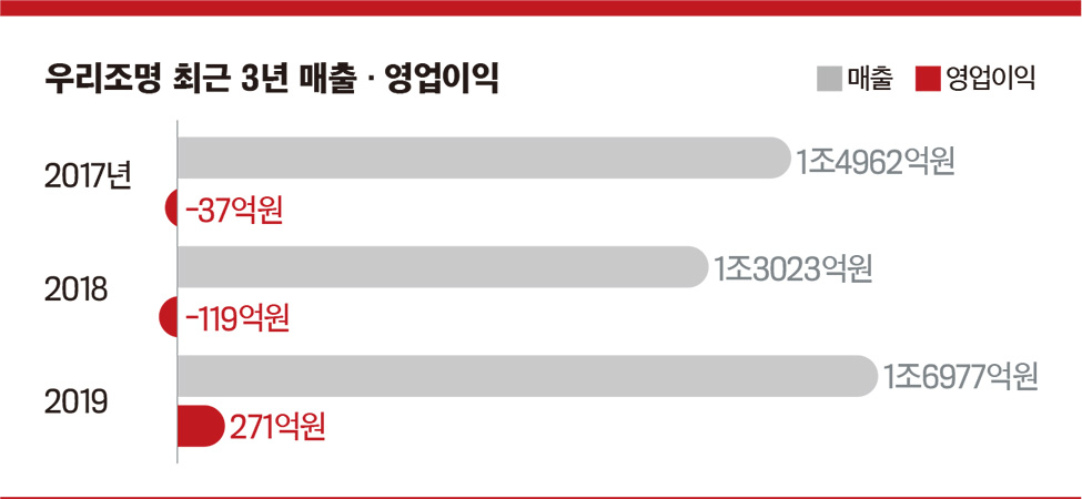 우리조명은 55년 동안 한국 조명 산업을 이끌어 왔지만 조명기구의 매출 규모는 크지 않다. 우리조명은 LED산업조명·LED홈조명·LED스포츠조명·LED상업조명·가정용조명사업을 영위하고 있는데, 세계 LED 조명 산업의 가격경쟁으로 수익성 확보가 점차 어려워지고 있다. 그럼에도 우리조명은 품질 향상과 디자인 차별화로 견고한 실적 흐름을 만들어내고 있다. 저가제품의 공세에 대응해 Wi-Fi, 블루투스 등을 이용한 스마트 조명을 출시하며 판매를 확대하고 있다. 우리조명의 지난해 별도기준 매출액은 269억원으로 전년(264억원) 대비 12% 늘었으며, 같은 기간 영업이익도 4억원대에서 7억원대로 커졌다.