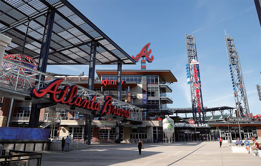 신세계그룹과 같은 유통기업은 아니지만 미국 대형 미디어그룹인 리버티미디어그룹이 구단주로 있는 미국 애틀랜타 브레이브스 홈구장의 사례도 눈 여겨 볼만 하다. 미국에서는 3~4년 전부터 오래된 야구장과 인근 상권을 복합 개발하는 대규모 프로젝트가 활발히 진행되고 있다. 대표적인 사례가 2017년 재개장한 브레이브스의 홈구장 ‘트루이스트 파크’다.