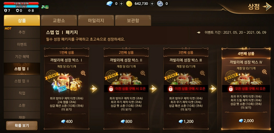 트릭스터M은 리니지2M과 마찬가지로 화폐 단위로 다이아를 사용하며, 현금 11만원에 4000 다이아를 제공한다는 점도 똑같다. 리니지2M에서 악명이 높았던 ‘스텝업 패키지’도 그대로 넘어왔다. 스텝업 패키지란 과금 규모를 점차 늘려가며 아이템을 순서대로 구매하는 방식의 상품이다. 적은 금액을 미끼로 유저들의 과금을 유도한 후, 좋은 아이템은 마지막에 배치해 한번 과금을 시작한 유저들이 끝까지 과금하도록 만든다.