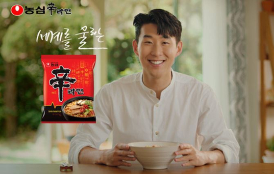 ‘사나이 울리는 신라면’에서 ‘세계를 울리는 신라면’으로 광고 카피가 추가된 건 지난 2019년부터다. 당시 농심은 세계적인 축구선수 손흥민을 신라면 광고모델로 기용하면서, 손흥민 선수의 국가대표 이미지를 신라면에 더했다. 농심 관계자는 “농심 신라면이 세계 100여개 국가에 수출되면서 일본, 중국의 라면 브랜드와 경쟁하는 국가대표 신라면이라는 변화한 위상을 광고 카피에 담았다”고 설명했다.