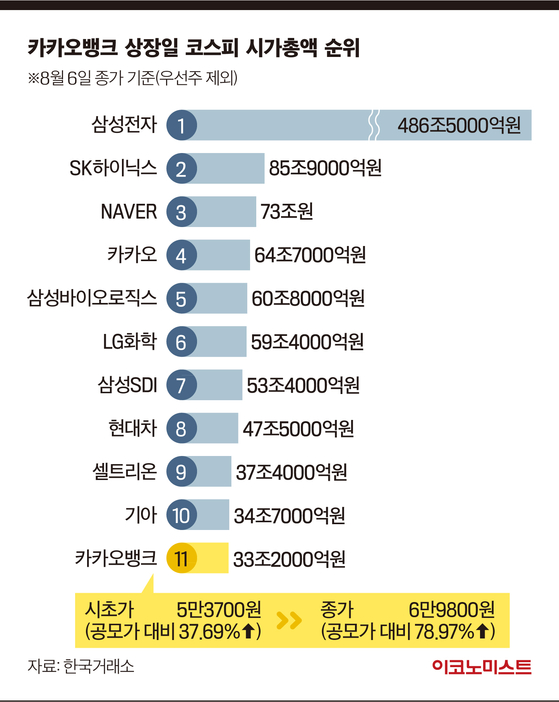 상장 준비중인 카카오페이 가치가 시가총액 기준 10조원 이상 거론되고, 향후 다른 계열사가 추가 상장에 나설 수 있다는 점을 고려하면 카카오 그룹이 3위로 올라설 가능성도 있다. 카카오가 2017년 7월 상장한 후 불과 4년여 만의 일이다.