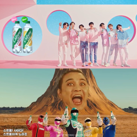 잇달아 새 제품을 출시하면서 광고 모델도 바뀌었다. 맑고 깨끗한 이미지를 나타낼 때는 가수 혜은이, 배우 채정안 등 여성 스타가 모델로 다수 나왔다면, 최근에는 경쾌하고 역동적인 이미지를 나타내는 남성 모델이 출연한다. 2019년에는 ‘사이다’라는 노래로 인기를 끈 가수 노라조를칠성스트롱 사이다 모델로 발탁해, 유머러스하고 개성 넘치는 광고를 선보였다. 지난해 5월부터는 가수 BTS를 모델로 세우며 비트감 있는 음악과 함께 칠성사이다 청귤, 복숭아 맛을 홍보하고 있다.