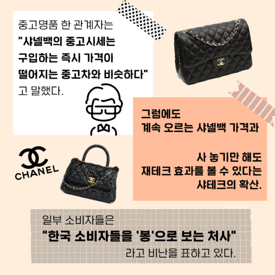 그런데도 샤넬백은 계속 오르고, 또 오르고 있습니다. 사 놓기만 해도 돈을 번다는 샤테크 역시 수그러들지 않고 있는데요. 일부 소비자들은 이런 현상에 대해 샤넬이 한국 소비자들을 봉으로 보는 처사라고 비난합니다.