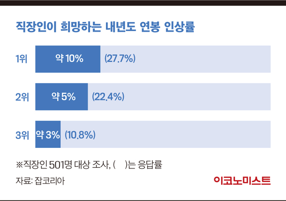 연봉 10% 인상 희망하는 직장인이 가장 많아